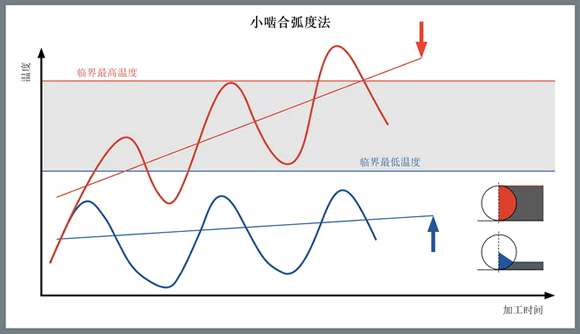 為銑削加工計算的補償因子指出了多種途徑來改變與刀具嚙合量有關(guān)的切削參數(shù),從而保持所需的加工溫度。如果溫度過低,則無法使刀具材料達(dá)到最大的韌性,同時還可能會形成積屑瘤(積屑瘤是導(dǎo)致切削刃斷裂或微崩的情況)。如果溫度過高,則會加快切削刃磨損或刀具變形。通過參數(shù)調(diào)整進(jìn)行補償可以平衡熱負(fù)荷與機(jī)械負(fù)荷,優(yōu)化刀具壽命和生產(chǎn)率。